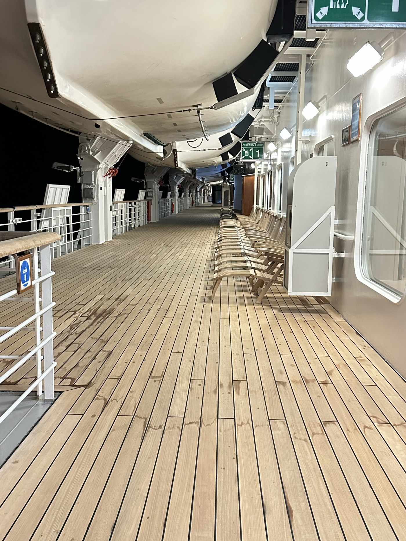 Although I have been having a blast, my lack of a blog post is due to the ship’s internet being down for two days. It really makes you stop and realize how dependent we are on being able to have instant communication with friends and family. Not having the internet and the lack of constant inputs is like a peaceful walk on the promenade deck. (see above photo)