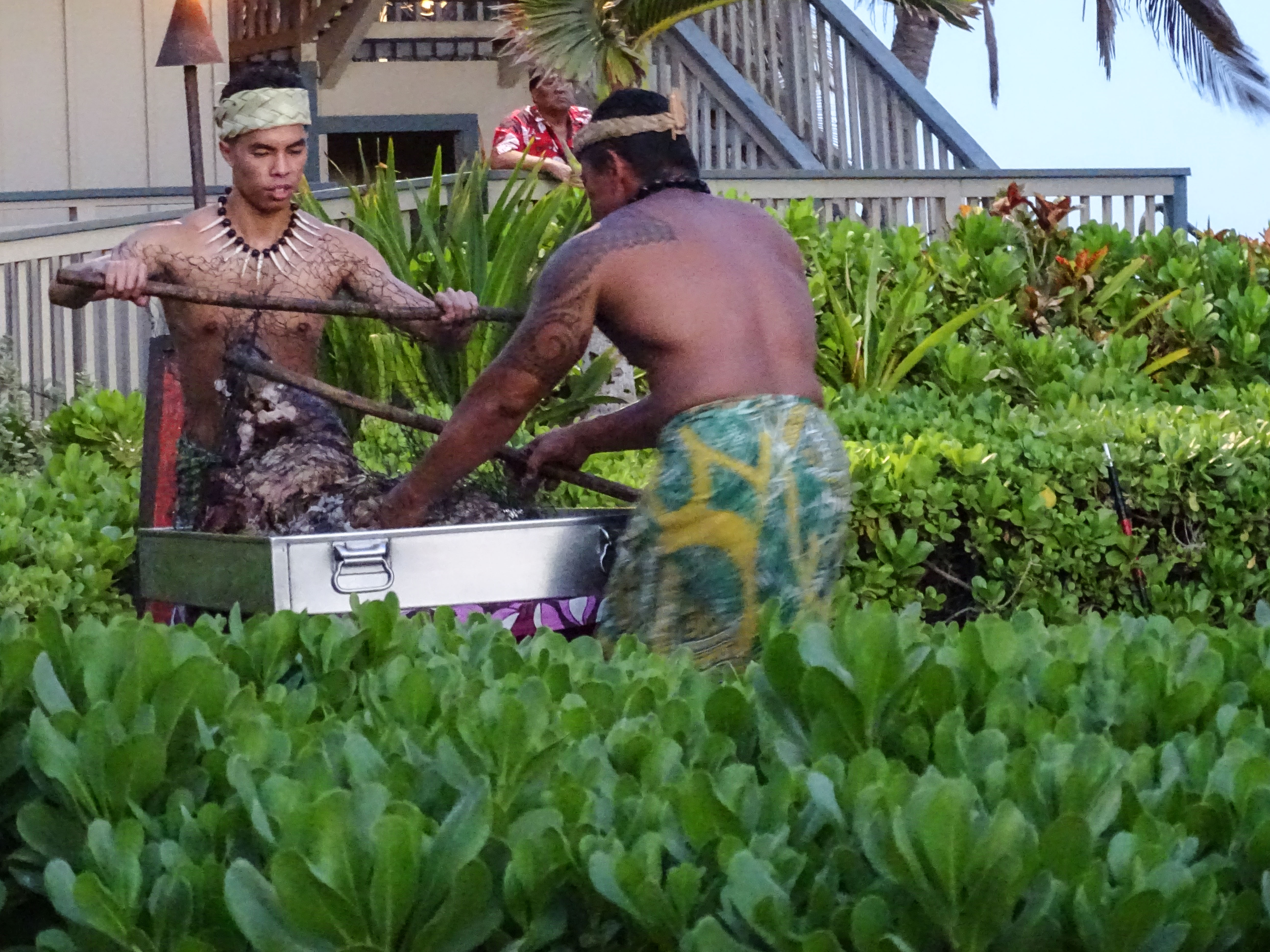 The first of the festivities was lighting the torches, and then removing the pig from the pit. As you can see it was pretty nice scenery— of course I meant the pig. Not only did the food look good, it also tasted good.