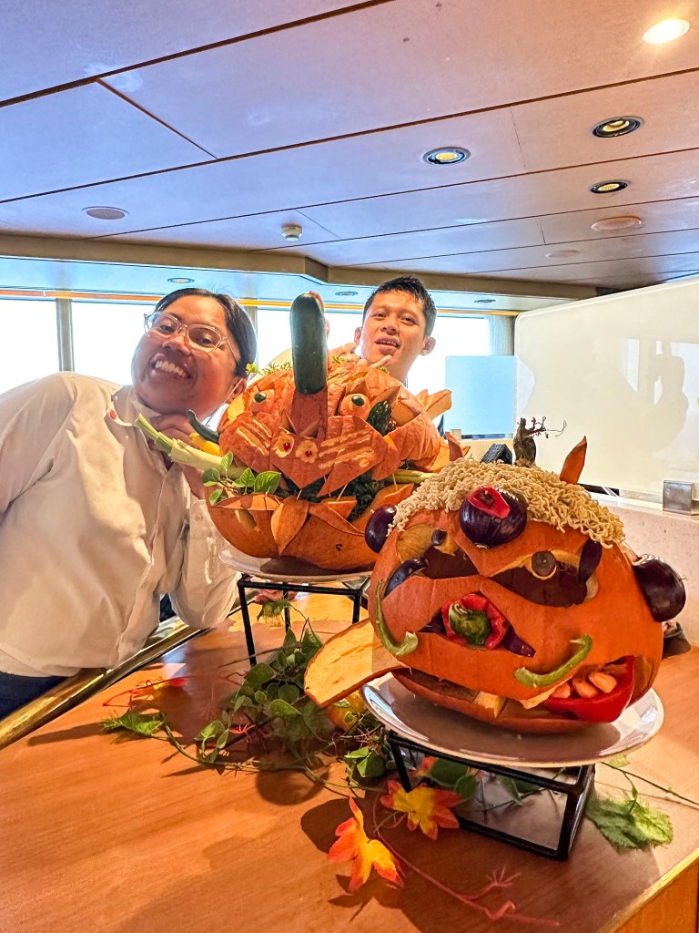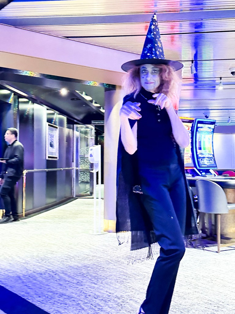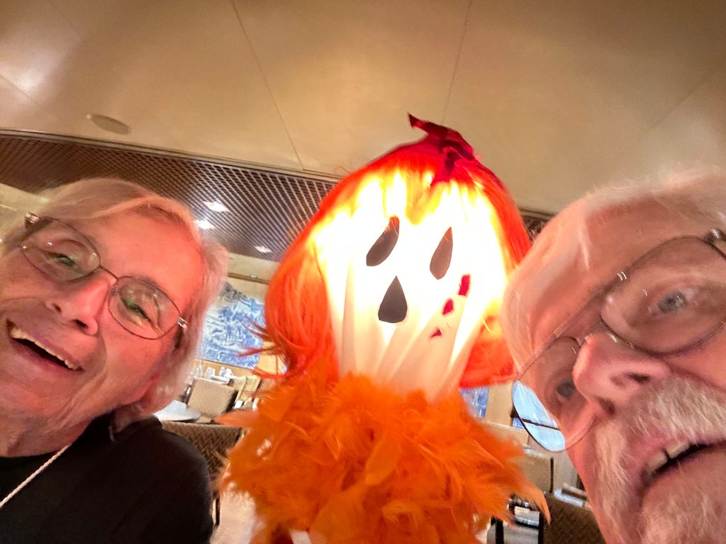 We did get to spend Halloween on board the ship. It was not one of the days, we skipped as we crisscrossed the International Dateline. The Lido (buffet) was decorated with ghosts and pumpkins. Witches were running around with a cameraman in tow so you could get your photo taken with a witch. There was a party in the Rolling Stone Lounge with music, dancing, and goodies.