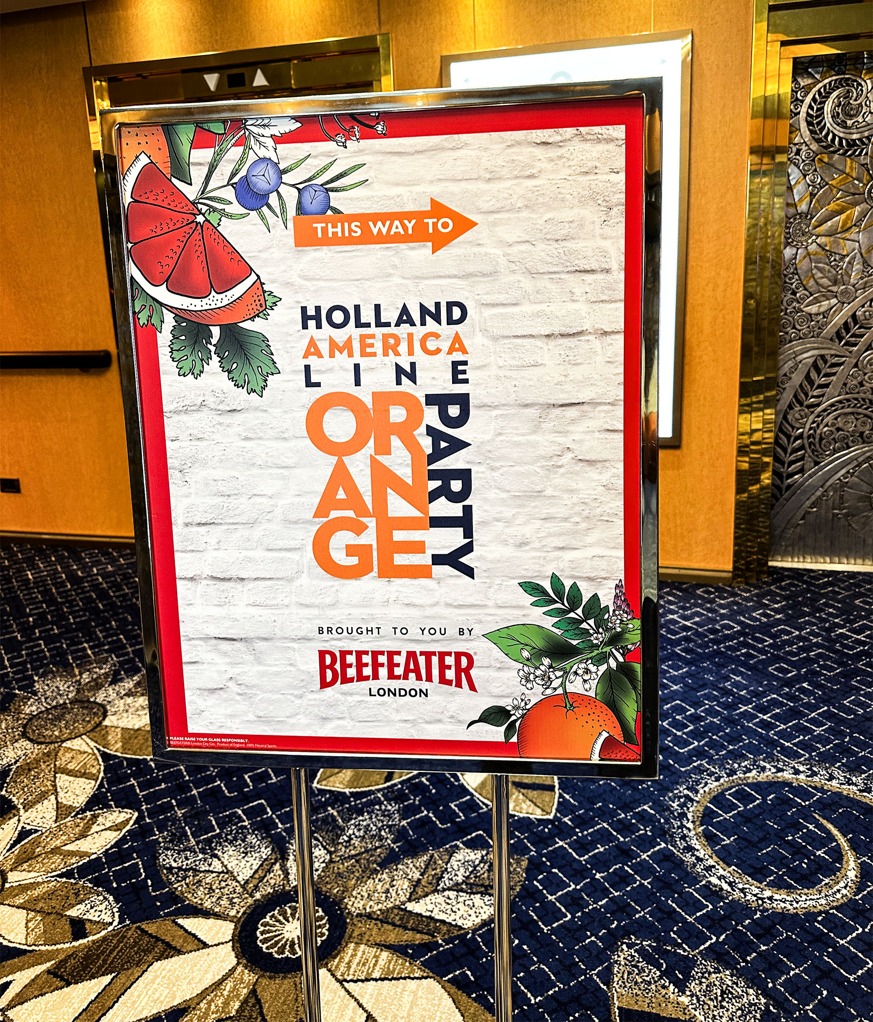 Every cruise year-round, Holland America’s ships have an Orange Party — inspired by King’s Day celebrations — and guests receive an email prior to departure inviting them to bring orange attire to wear to the festivities. What a party they hold. There are some very creative ways to display your orange. The Dutch treats start flowing and you could actually make a meal out of the goodies they passed around.