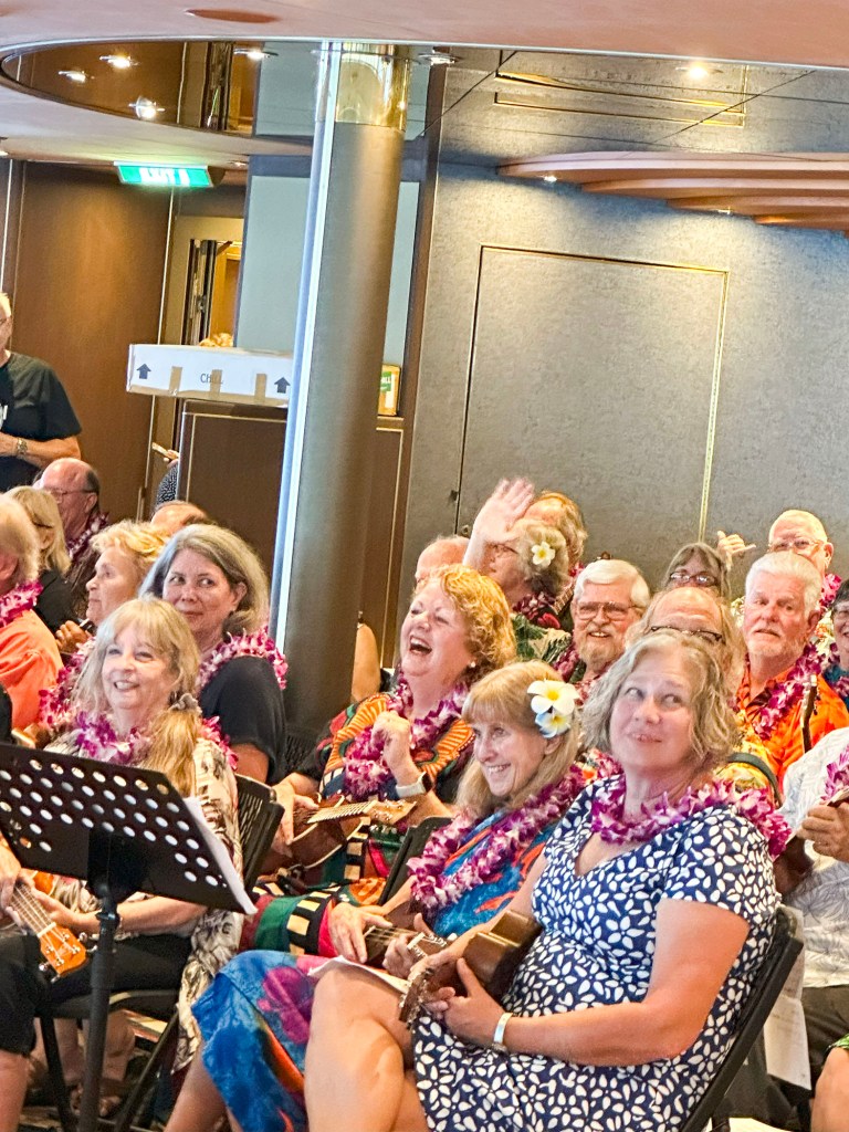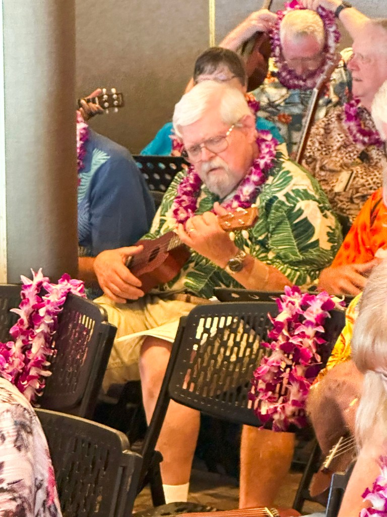 On this cruise, Ukulele lessons were offered. Steve decided to try it out. Every sea day at 1 p.m., he went off to his lessons. After the 3rd lesson, he announced his class would put on a concert. We were excited, but Steve was nervous.