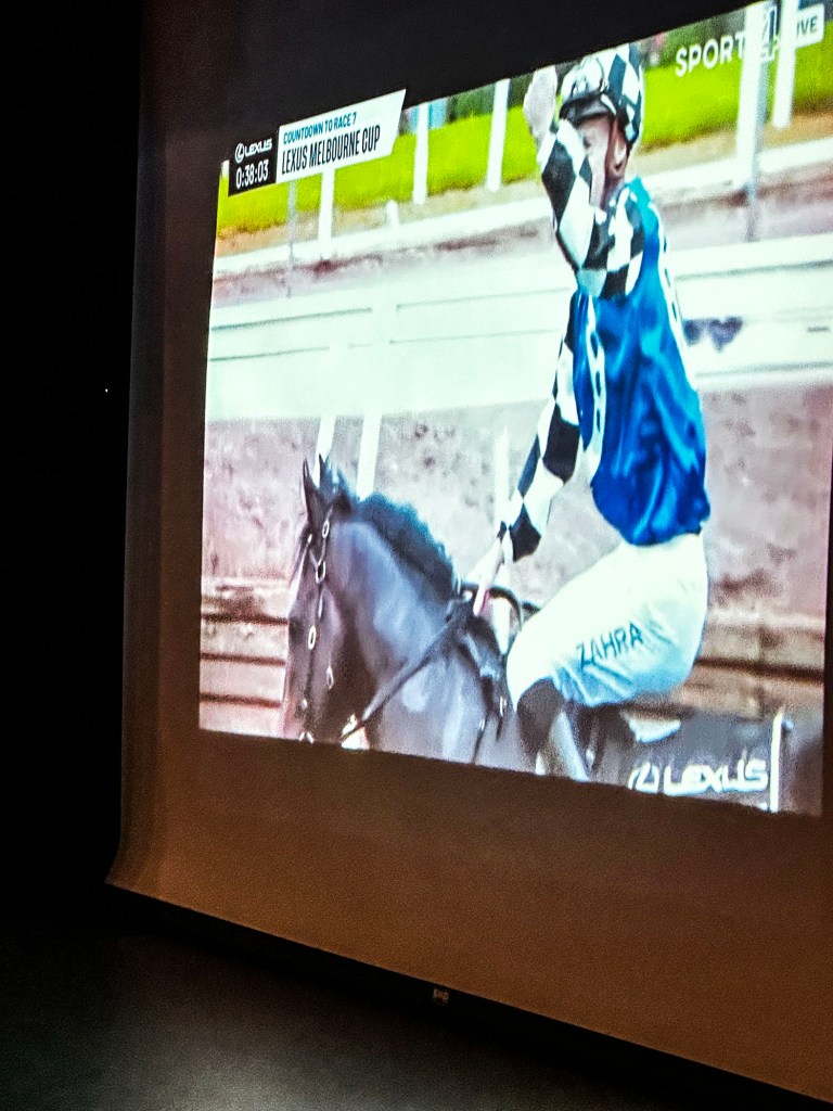 We have a lot of Australians on this cruise and they organized a party in the Rolling Stone Lounge so anyone who wanted could watch the Melbourne Cup Horse Race. So we did! They had a lottery system for placing bets on the horses. We placed bets. We looked up the horses to see who was running, it seemed like the thing to do. A horse named, “Without a Fight” won. Turns out his jockey also won last year. Steve won with his horse “Future History” who came in third place. It was a fun afternoon.