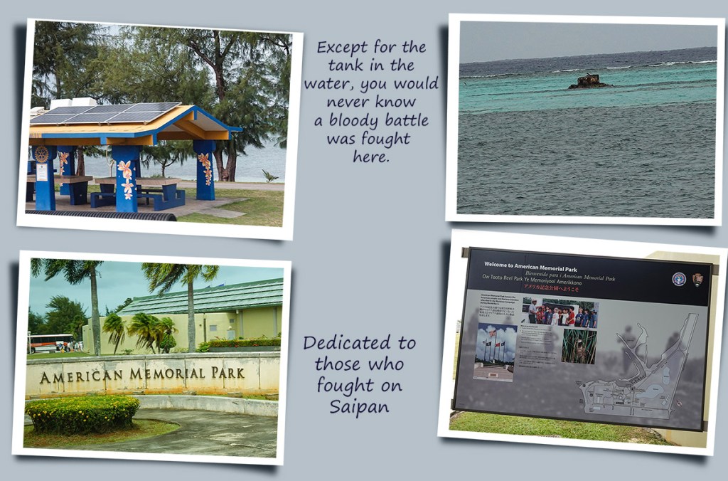 We went to beautiful beaches where the marines landed. Today they are places for families to have picnics and do water sports. The only remnants of war seen on the beach is an old tank where they have snorkeling tours.
