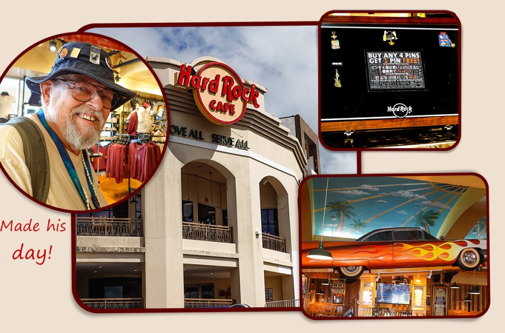 Since we did not have a tour booked for Guam, we took advantage of the free shuttle bus from the ship to the downtown area. As we approached our destination, the largest building was the Hard Rock Cafe. Steve was ecstatic. Guess where we spent the majority of our time? Yup, the Hard Rock Cafe. Steve got a pin and we ended up having lunch along with quite a few of our shipmates. It turned out to be a popular spot.