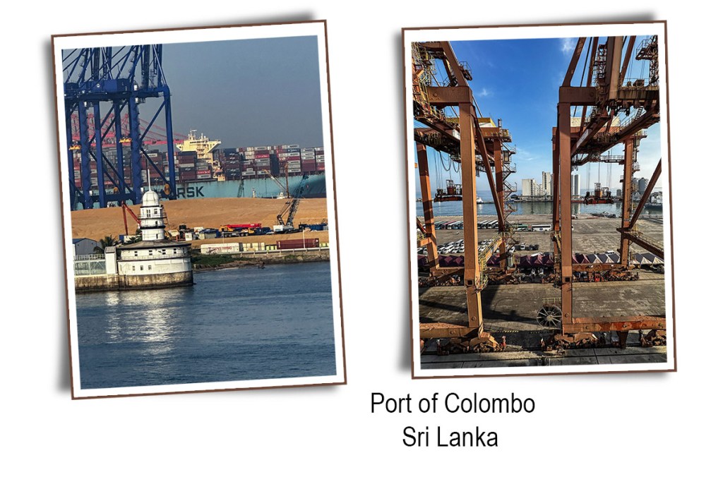 What do you think when you think of cruise ship ports? Probably large buildings with modern facilities. Well, you would be correct if you are docking in most large cities. However, lots of small cities or countries only have industrial ports. Here is the view from our balcony in Colombo.