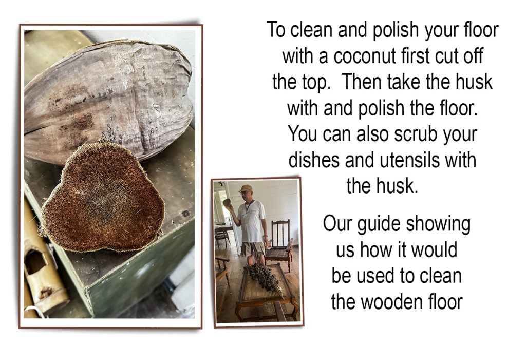 At a stop in a craft village, our guide told us about using coconuts to do housework. I think I like our modern conveniences much better.