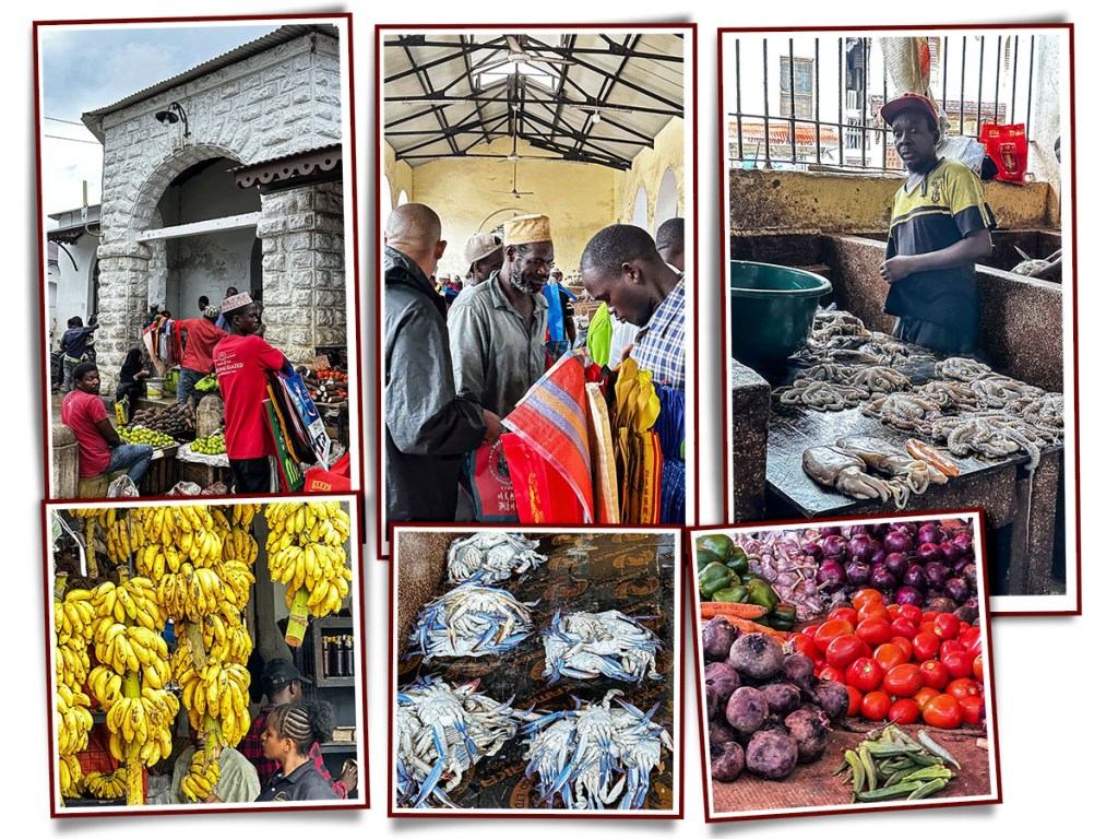 We’ve been to mainland Tanzania on a safari several years ago but Zanzibar was a new experience. We went into town in the evening thus avoiding the extreme heat. We did a quick tour of the city including the local market. The smell of the fish was powerful, making us glad we did not visit the market in the heat of the day. The one thing that all of the markets had in common was great-looking fruits and veggies.